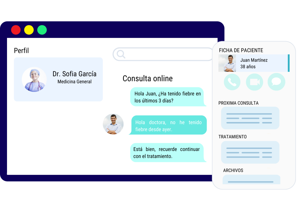 Conecta con tus pacientes desde cualquier dispositivo y lugar, allí donde estén.
